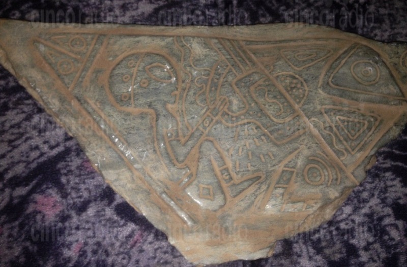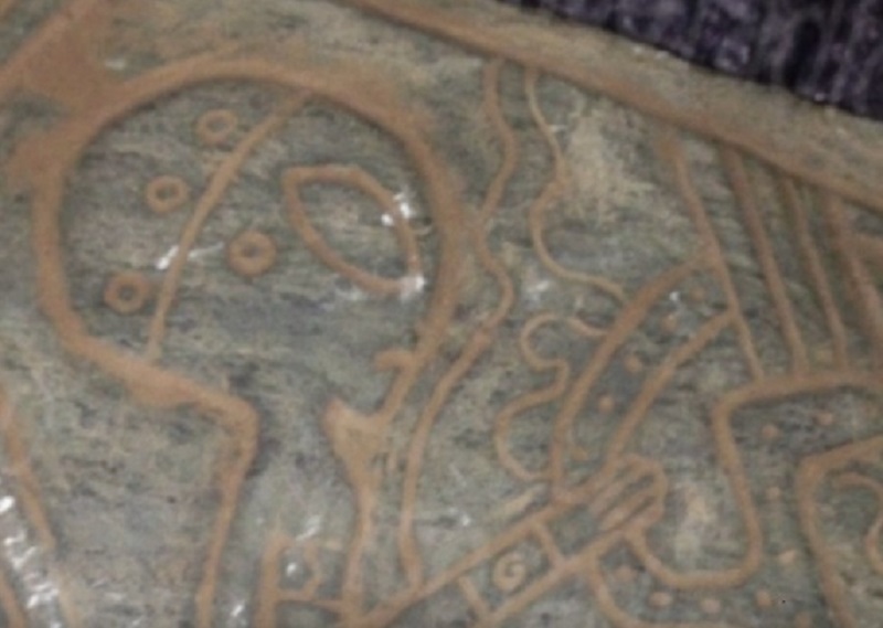 Su una delle pietre, i disegni mostrano la metà superiore di un’astronave e di un essere umanoide di un altro mondo.