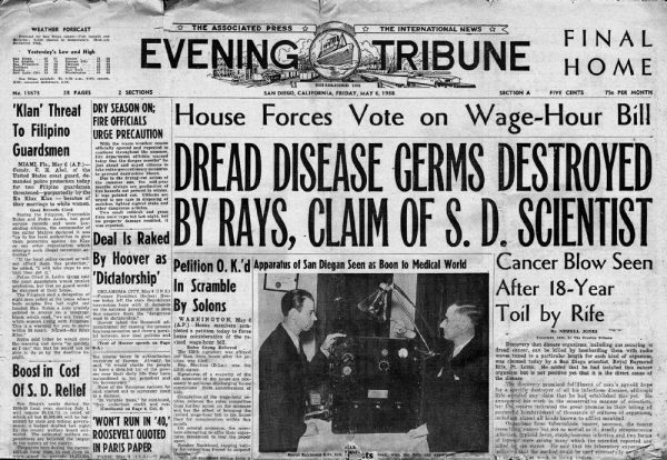 Rife trattò con successo 1000 pazienti a cui fu diagnosticato un cancro incurabile negli anni ’30.