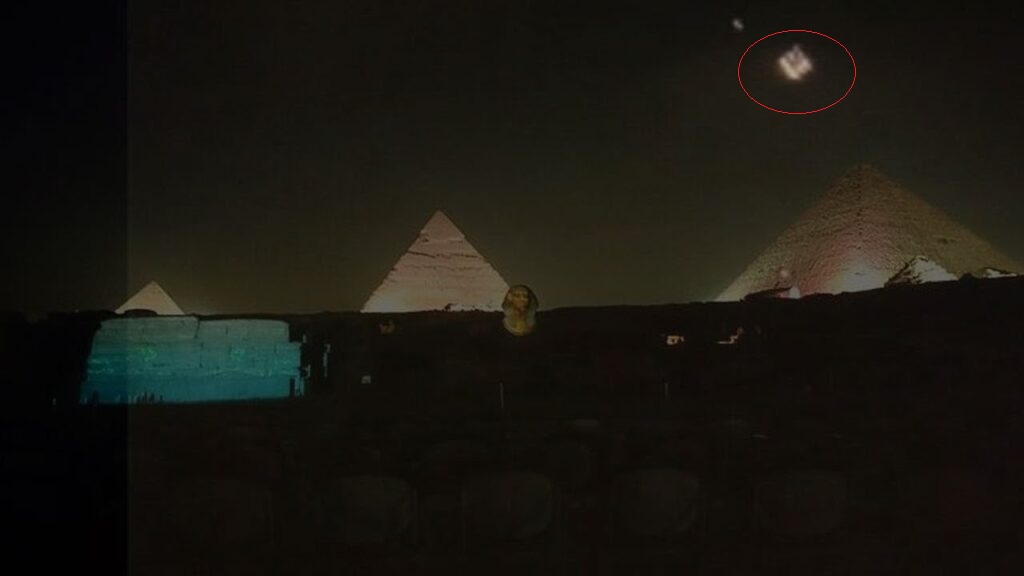 Qualcosa di strano è accaduto nel cielo sopra le piramidi di Giza, la notte del 3 dicembre, quando nel cielo sono apparsi oggetti luminosi: uno molto grande a forma di diamante e diversi più piccoli che si muovevano vicino ad esso. Gli oggetti hanno formato la figura di un rombo.