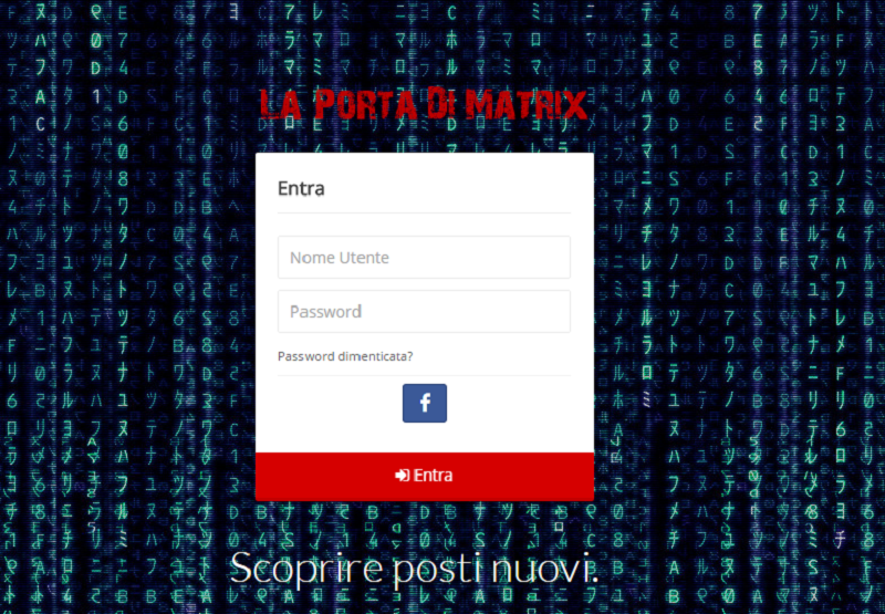Sono sempre di più in Italia e nel mondo le persone appassionate di mistero, dagli UFO all’antico Egitto misterioso e tantissime altre tematiche inerenti.Navigando per la rete si trova molto materiale a riguardo. Sono molti i video riguardanti avvistamenti, o presunti tali, di UFO, sono moltissimi i siti che trattano queste tematiche.Ma in questi giorni l’attenzione è puntata su un sito che in realtà all’interno non ha articoli riguardanti il mistero ma bensì un vero e proprio social network.Siamo stati attratti dal nome “La Porta di Matrix” un nome che ci ricorda la triologia di Matrix, dei registi Lana Wachowski e Andy Wachowski.