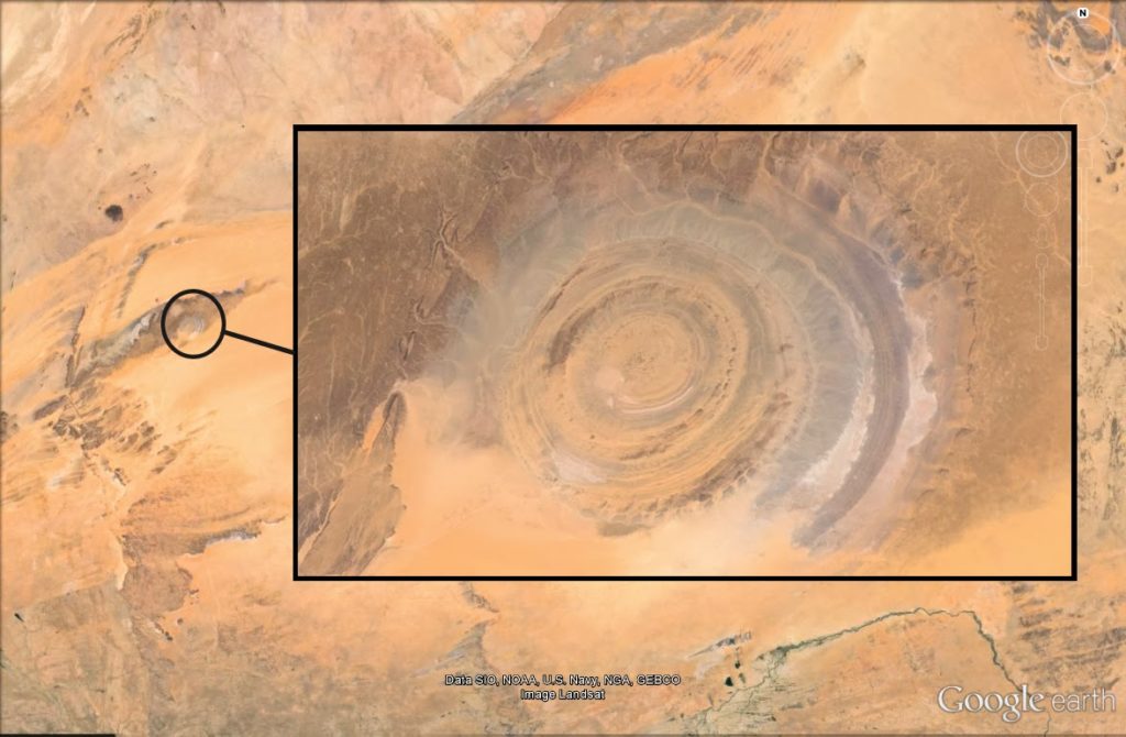 La struttura di Richat è una struttura di terra di origine sconosciuta in Mauritania, sulla costa nord-occidentale dell’Africa.