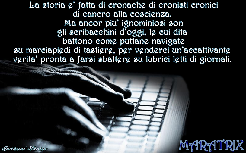 Facebook 0 Twitter 0 Pinterest0 LinkedIn WhatsApp 0SharesGIOVANNI MARANO – Pagina Facebook MARATRIX Facebook 0 Twitter 0 Pinterest0 LinkedIn WhatsApp 0Shares Navigazione articoliMARATRIX: Schiavi della libertà! MARATRIX: Troppo morti per morire!