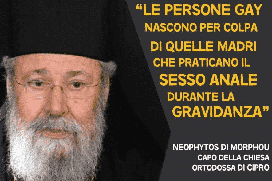L’arcivescovo Neophytos di Morphou, capo della chiesa ortodossa di Cipro, durante un ritiro spirituale parla di una sua teoria riguardo l’omosessualità: