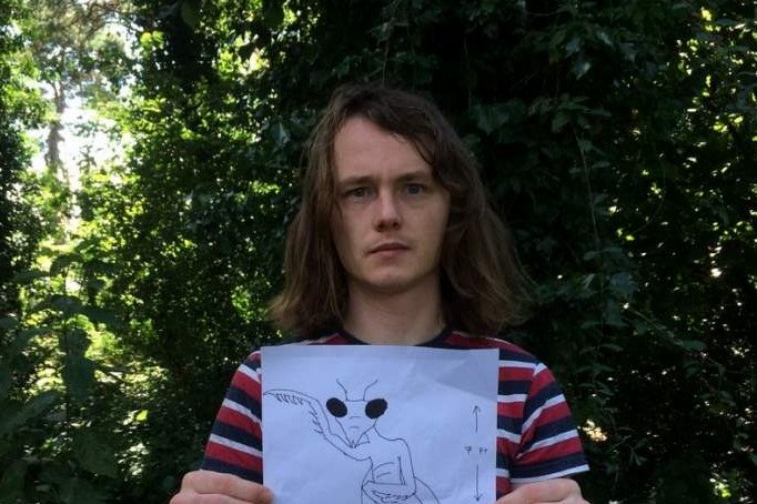 Paul Froggatt, 26 anni, ha disegnato un alieno che ha detto di aver visto mentre tornava a casa. Il ragazzo, un appassionato ciclista, dice di essere sfuggito all’attacco di una mantide religiosa aliena, molto telepatica e “malvagia”, alta due metri.