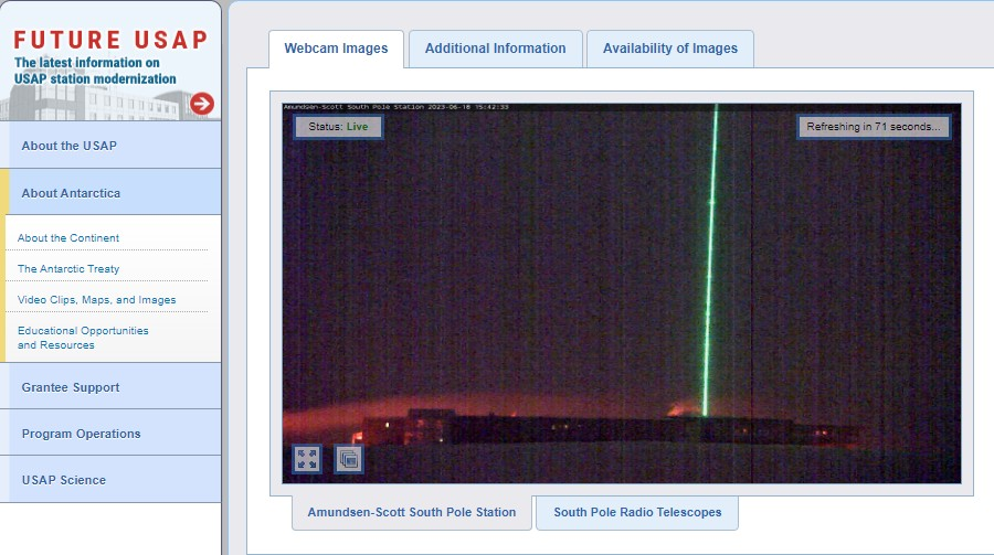 L’aspetto di questo fascio laser sembra essere legato a un grande esperimento scientifico, menzionato persino dalla stampa. La sua inattesa apparizione al polo sud è avvenuta in segreto, suscitando curiosità tra i teorici del complotto: perché il lidar (rilevamento ottico e laser) ha iniziato a funzionare proprio quando il polo nord magnetico ha raggiunto la sua posizione critica? Inoltre, l’installazione del lidar presso la stazione è iniziata proprio quando si è compreso approssimativamente quando il polo nord magnetico avrebbe raggiunto il punto critico. Ciò suggerisce che i geofisici statunitensi stiano monitorando lo spostamento dei poli.