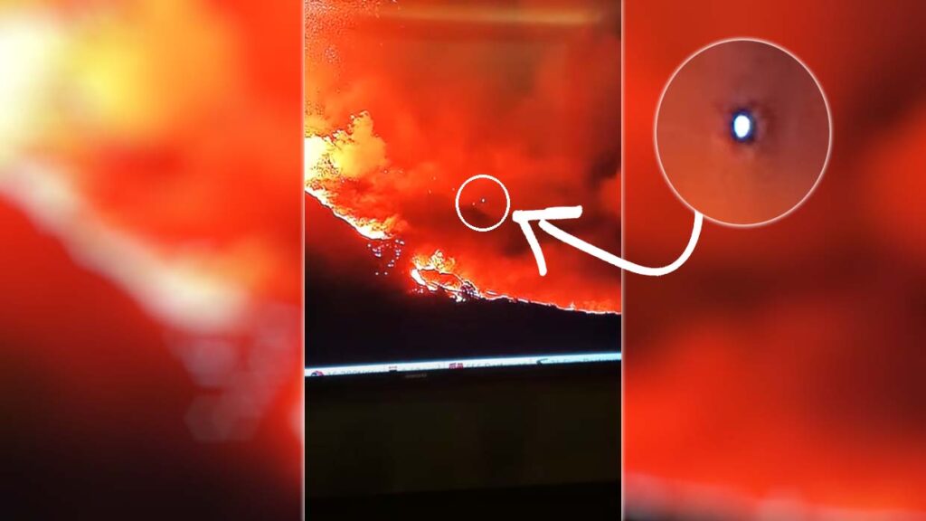 L’attività sismica e la colata lavica sono state instabili e inarrestabili, fluttuando di giorno in giorno. Tuttavia, in mezzo a tutta questa frenesia vulcanica, alcuni hanno visto uno strano oggetto volare molto vicino al vulcano.
