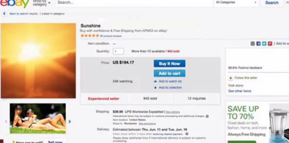 Quindi ha pensato bene di mettere in vendita il suo sole mettendolo sul famoso sito di aste eBay.