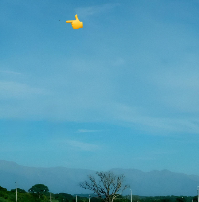Dopo aver immortalato alcuni paesaggi lungo la strada, Rina ha notato una strana macchia scura nel cielo e ha deciso di fotografarla, pensando inizialmente che fosse un uccello.